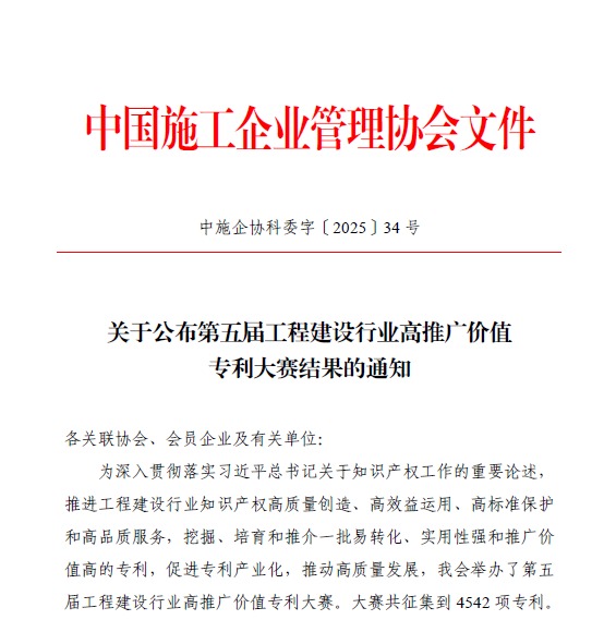 倍特建安荣获第五届工程建设行业高推广价值专利大赛三等奖